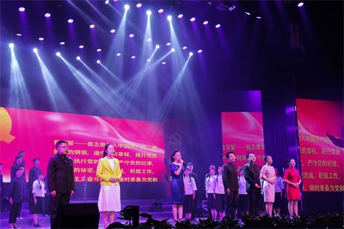 “我是一名党员教师,从教30年,责任担当,立德树人,敬心教书,潜心育人……”在情景诗朗诵《我们的信仰》时,有一位带领全场面对着党旗宣誓的老教师特别引人注目,她就是今年已年届60岁的我院教师马晓丽。排演时,她激动地对笔者说道:“我已经十多年没上台了,没想到临近退休了,还有机会与这么多同事一起登台演出,今天非常高兴,在党的生日来临之际,送上我们一线教师对党最美好的祝福。”