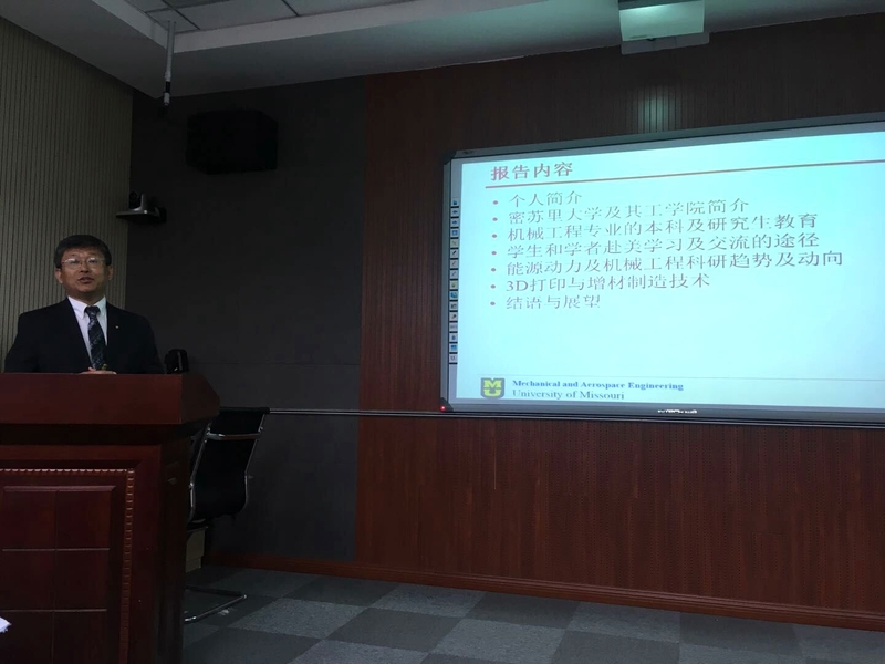 10月16日下午,美国密苏里大学张玉文教授受邀来我院作《国际机械工程前沿技术现状与前景展望》讲座。我院全体教师和部分来自外校的教师共同聆听了此次讲座。