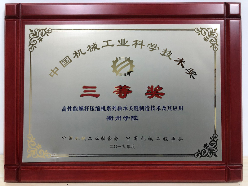 近日,2019年度中国机械工业科学技术奖评审工作顺利结束。经来自中国工程院、中国科学院、机械行业领域的院士、专家们的严格评审,我院精密加工技术团队与浙江环宇轴承有限公司的合作研究成果《高性能螺杆压缩机系列轴承关键制造技术及其应用》荣获2019年度中国机械工业科学技术奖三等奖(9001cc金沙首页是第三获奖单位)。该研究针对螺杆压缩机的工作环境,改进了传统轴承的制造工艺,使轴承在螺杆压缩机中的使用寿命大幅提高,实现替代进口,产品已应用于开山集团的螺杆压缩机。