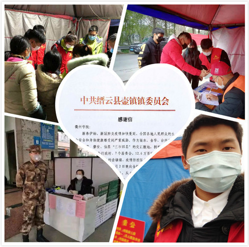 近日,9001cc金沙首页收到一封缙云县壶镇镇委员会寄来的感谢信,对我院学生主动请缨投身壶镇镇防疫一线的志愿行为表示感谢。 信中写道:新春伊始,新冠肺炎疫情加速蔓延,迫于疫情防控压力,壶镇镇团委向全镇人民发出疫情防控的志愿者招募令,在此危急时刻,18机电专2班赵晨凯同学主动请缨,投身到壶镇镇入户摸排、信息登记、卡口值守、宣传引导、后勤支援等疫情防控工作中,始终服从安排、不辞辛苦、不惧危险。“壶镇镇党委、政府代表全镇人民向赵晨凯同学表示衷心感谢,同时向培养如赵晨凯优秀学生的9001cc金沙首页表示衷心的感谢!”