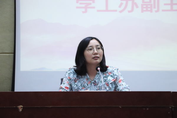 最后,栗明老师表达了对新一届学生会委员的欢迎以及对全体学生会成员的希冀和鼓励。她充分肯定了学生干部在为学院发展、学风建设、学生活动等方面做出的努力和奉献,她结合自身校园学生工作经历,强调了学生工作经历的重要意义,希望大家充分发挥主观能动作用,不断增强主人翁意识,恪守学生本分,牢记为同学服务的宗旨,推动学院团学工作迈向新台阶。