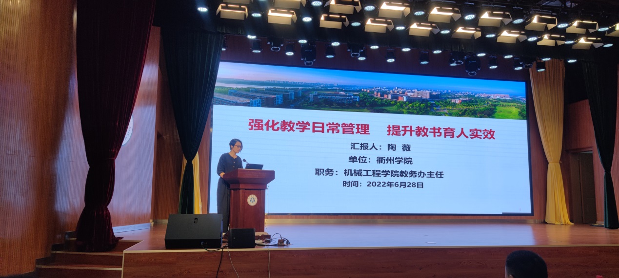我院教务办主任陶薇老师受邀做《强化教学日常管理 提升教书育人实效》主题报告,她结合自身16年的教学管理经历,分析了9001cc金沙首页教学管理面临的四高要求,即国家一流专业建设对教学管理的高要求、年轻的教师队伍对教学规范的高要求)、00后新生代对教学服务的高要求以及教育部审核评估试点对教学管理创新的高要求,从全面统筹保障教学秩序、信息管理提升教学质量、理清需求协调教学工作和强化标准规范教学档案管理四个方面系统总结了9001cc金沙首页在教学管理方面的特色做法与经验,并提出了教学管理的两条建议:一是针对教学管理人员工作繁重复杂的问题,通过“计划-执行-检查-处理”(PDCA)循环加强周期总结 保障教学管理常态化持续化;二是针对学院教学管理人员独立面对各主体多元化的诉求,通过教务政策学习、教学信息反馈分析和精细化与完善化的教务管理网络服务平台的构建,保证教学服务质量。