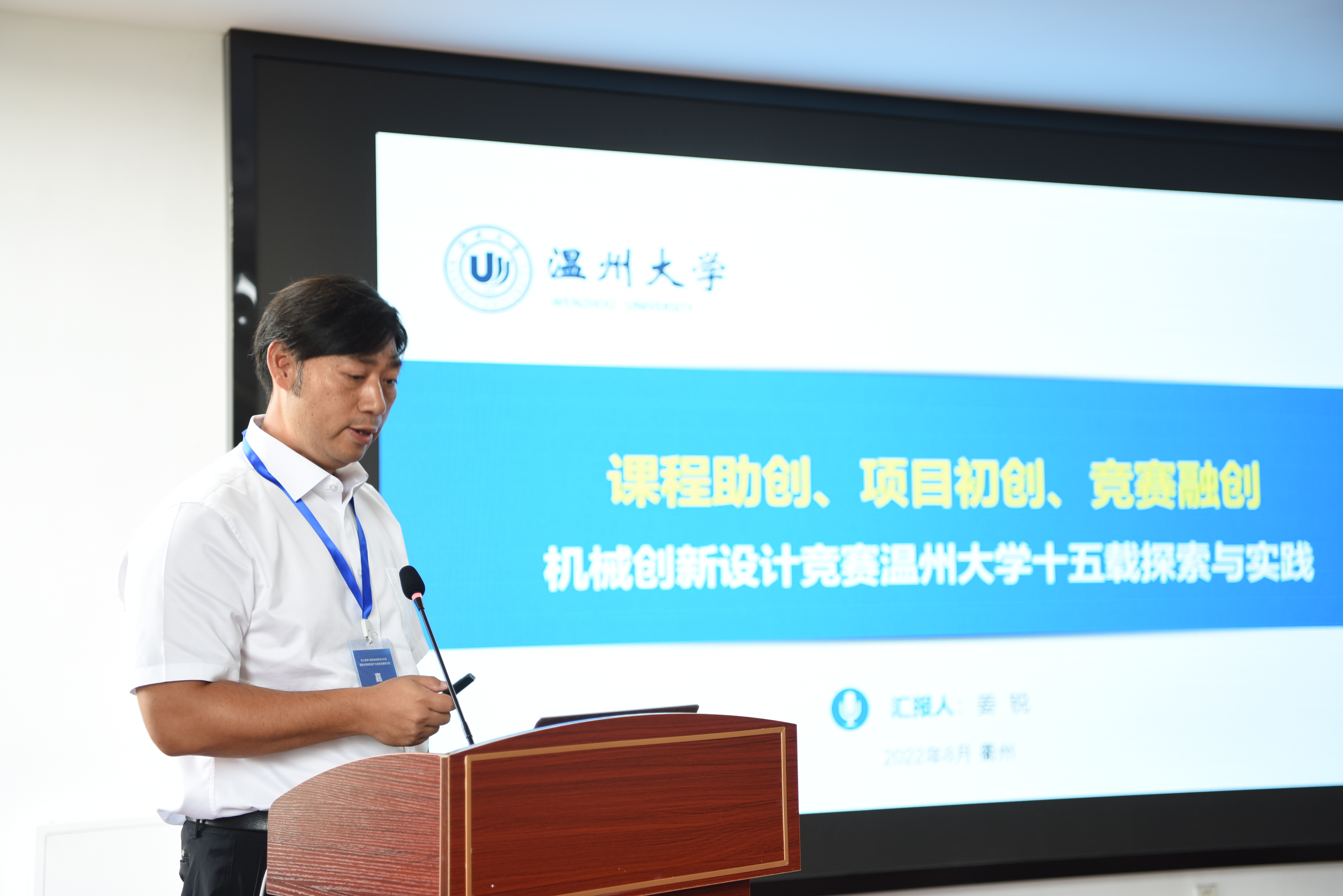 姜锐教授分享了温州大学机械设计竞赛近十五年来的探索与实践,并在《课程助创、项目初创、竞赛融创》专题报告中指出,通过构筑教学、课程、项目、竞赛等协同创新实践平台,达成创新人才培养的根本目标。